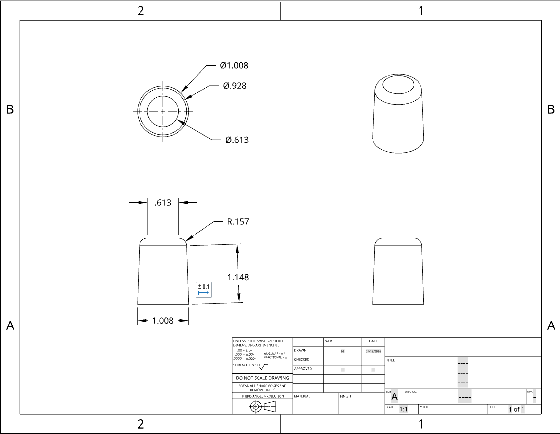 All Projects ONSHAPE PRACTICE SKETCHES September 2025 OnShape CShapeSINK DRAIN WASHERSPRAY CAN LIDMOB HOLDERSpoolSM Angle Bracket ARMED COUPLING